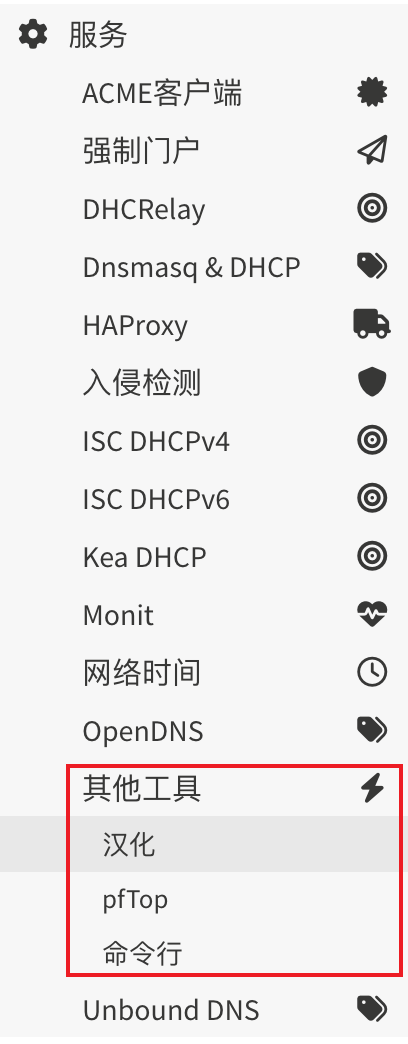 - 汉化工具:点击更新即可自动完成OPNsense的汉化。