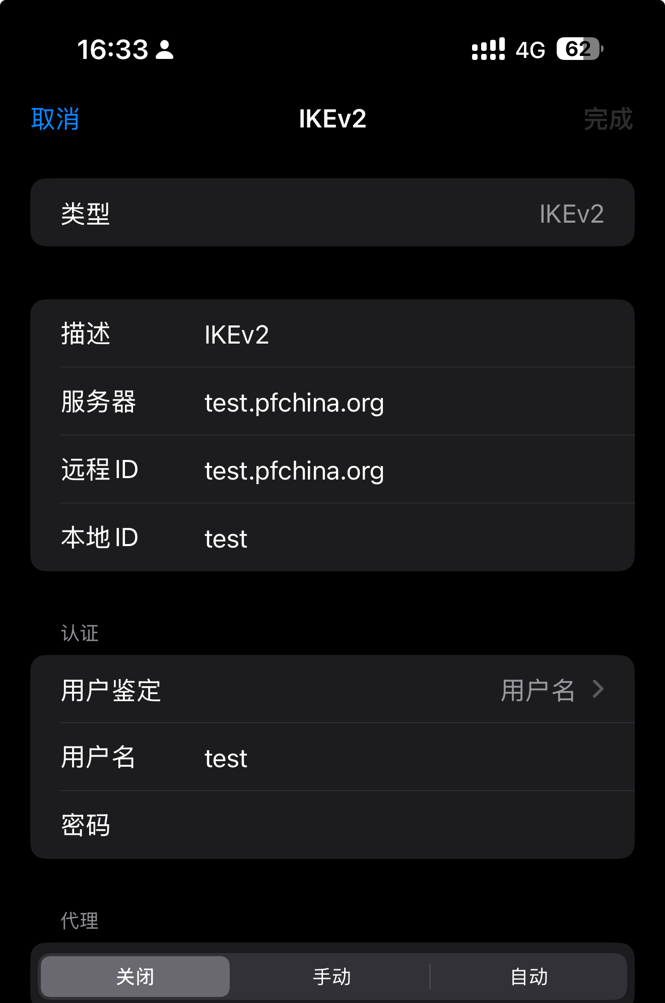 注意,本地标识符是用户名,预共享密钥是 VPN 连接的密码,类型选EAP。如果有多个 VPN 服务器,使用FQDN可以轻松掌握用户被分配到哪一个服务器。