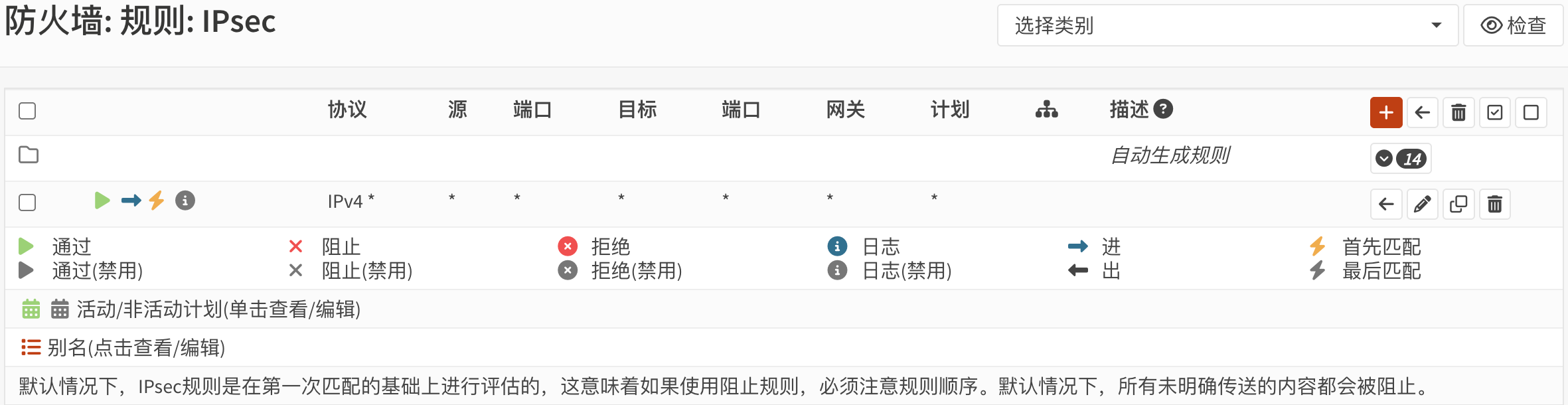 转到防火墙>规则>wan接口,添加允许IPsec访问的规则,接口放行UDP 500和4500端口。