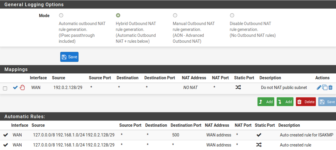 注意:在没有NAT的情况下,流量将从LAN流向这个公共子网。如果不需要这种行为,请相应地调整LAN防火墙和NAT规则。此外,策略路由可能需要绕过以允许从LAN到该接口。