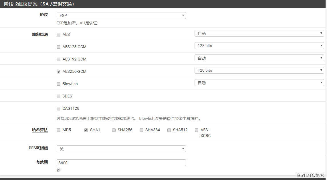 现在在这个 VPN上添加阶段2的设置,阶段2设置会多于阶段1,见下图: