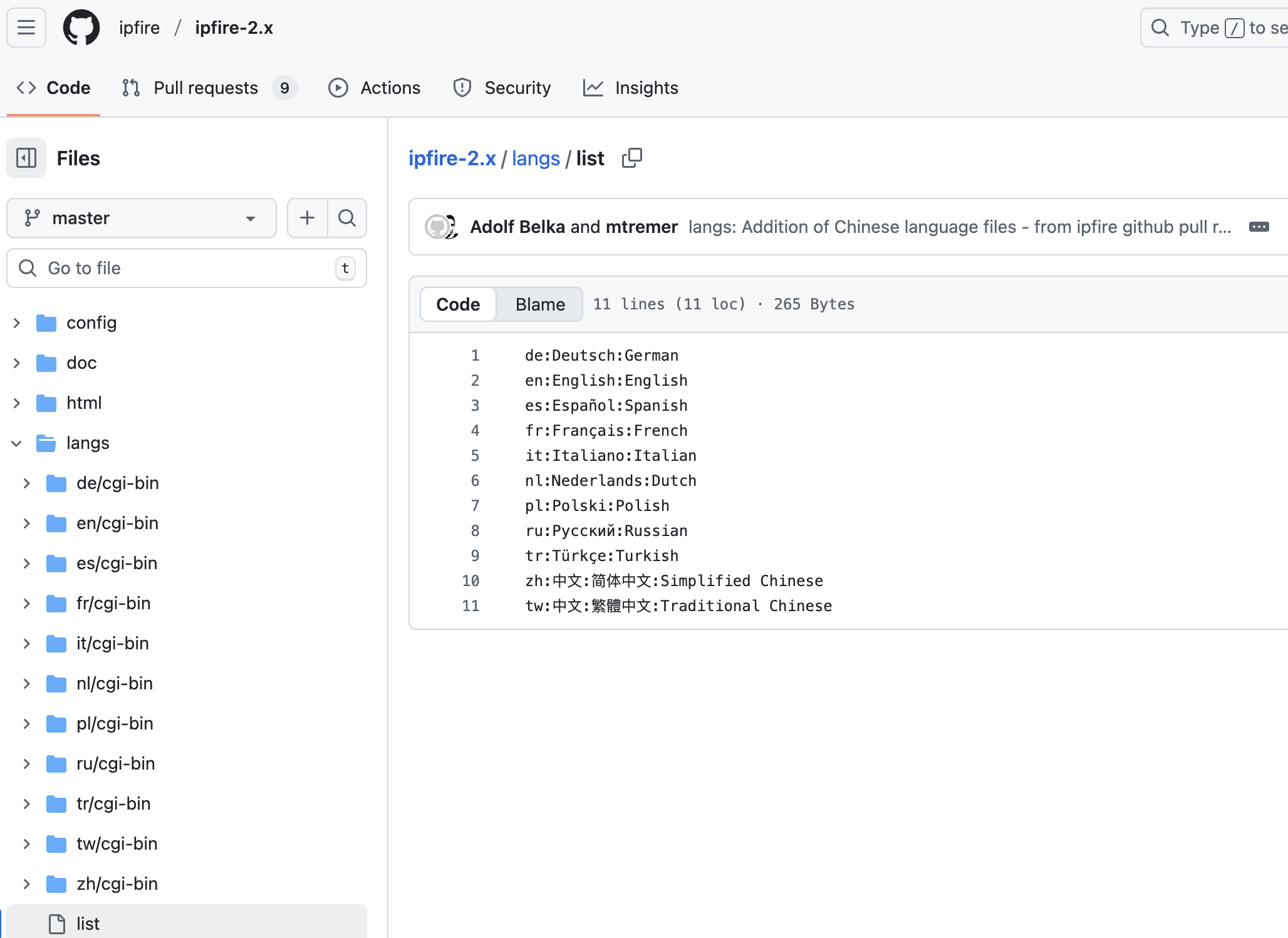 IPFire 官方未提供中文语言包。为方便国人使用,制作了简体和繁体中文语言包,有需要的可以下载使用。