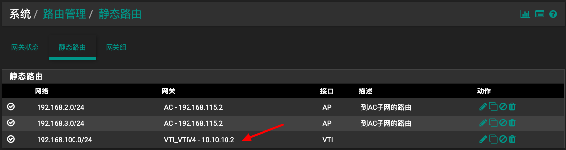 - 在“网关”字段中,选择IPsec网关(它与你创建的后缀为_VTIV4的接口同名)