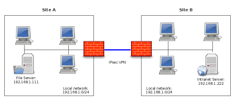 例如,如果两个站点的LAN使用同一子网192.168.1.0/24 ,则它们将无法通过 VPN 相互通信,因为子网在本地网络上是相同的,并且在远程网络也是相同的。