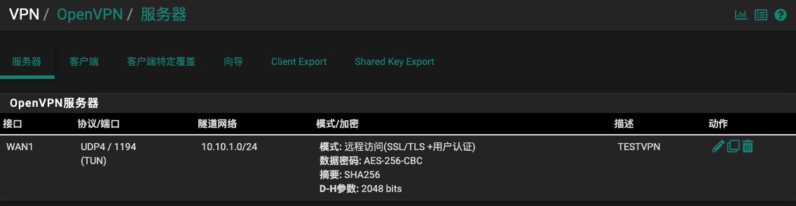 - OpenVPN的隧道网络:10.10.1.0/24